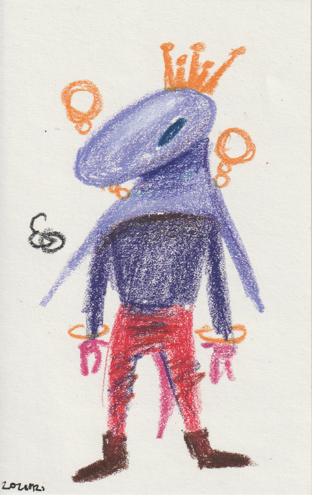 Chairs drawn with wax pastel in a cubist style. (raw)